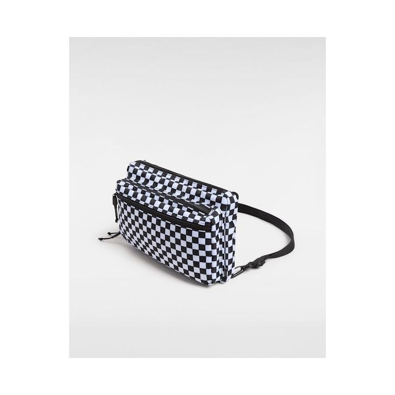 Taška má několik oddělených přihrádek na zip.